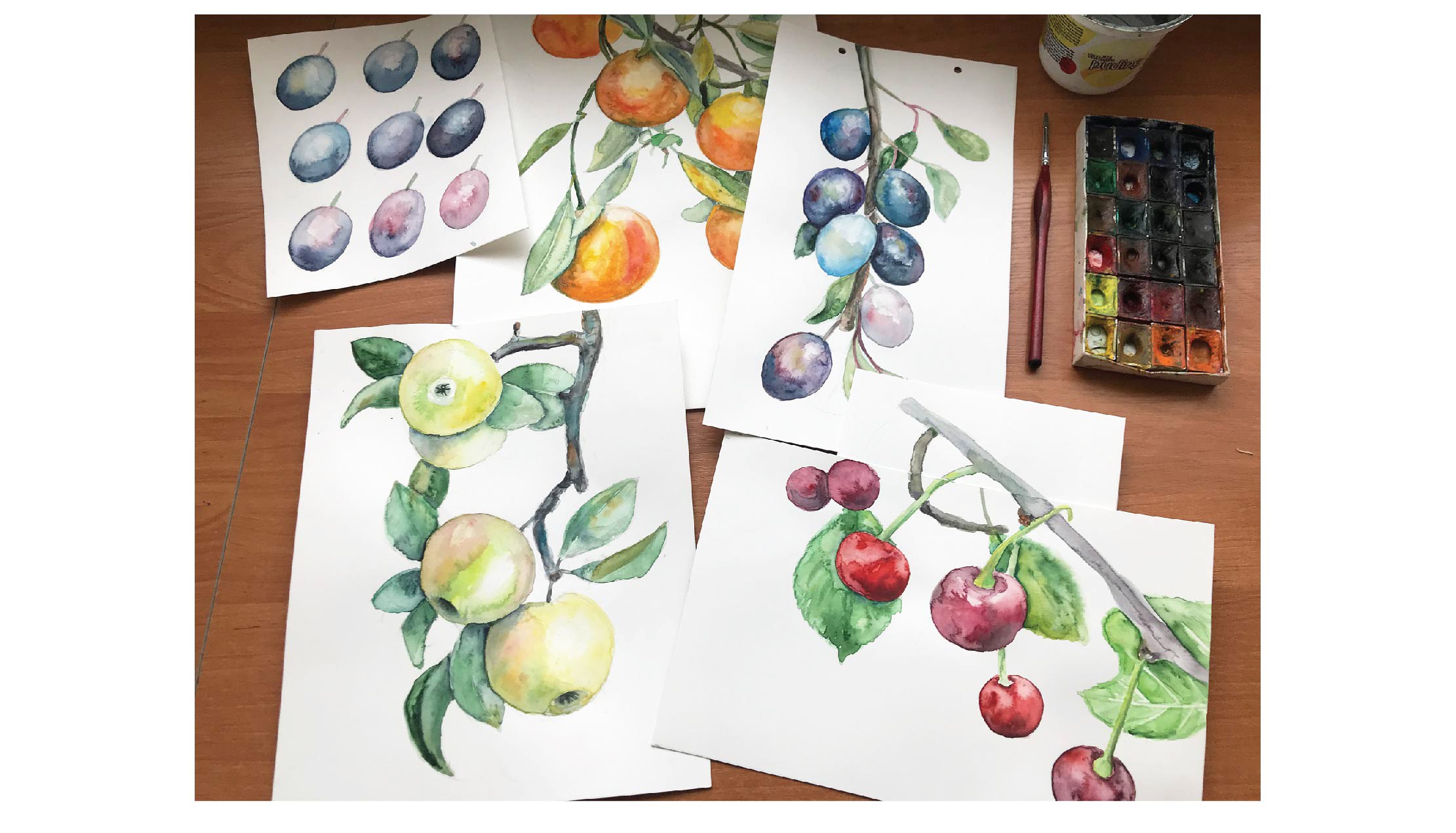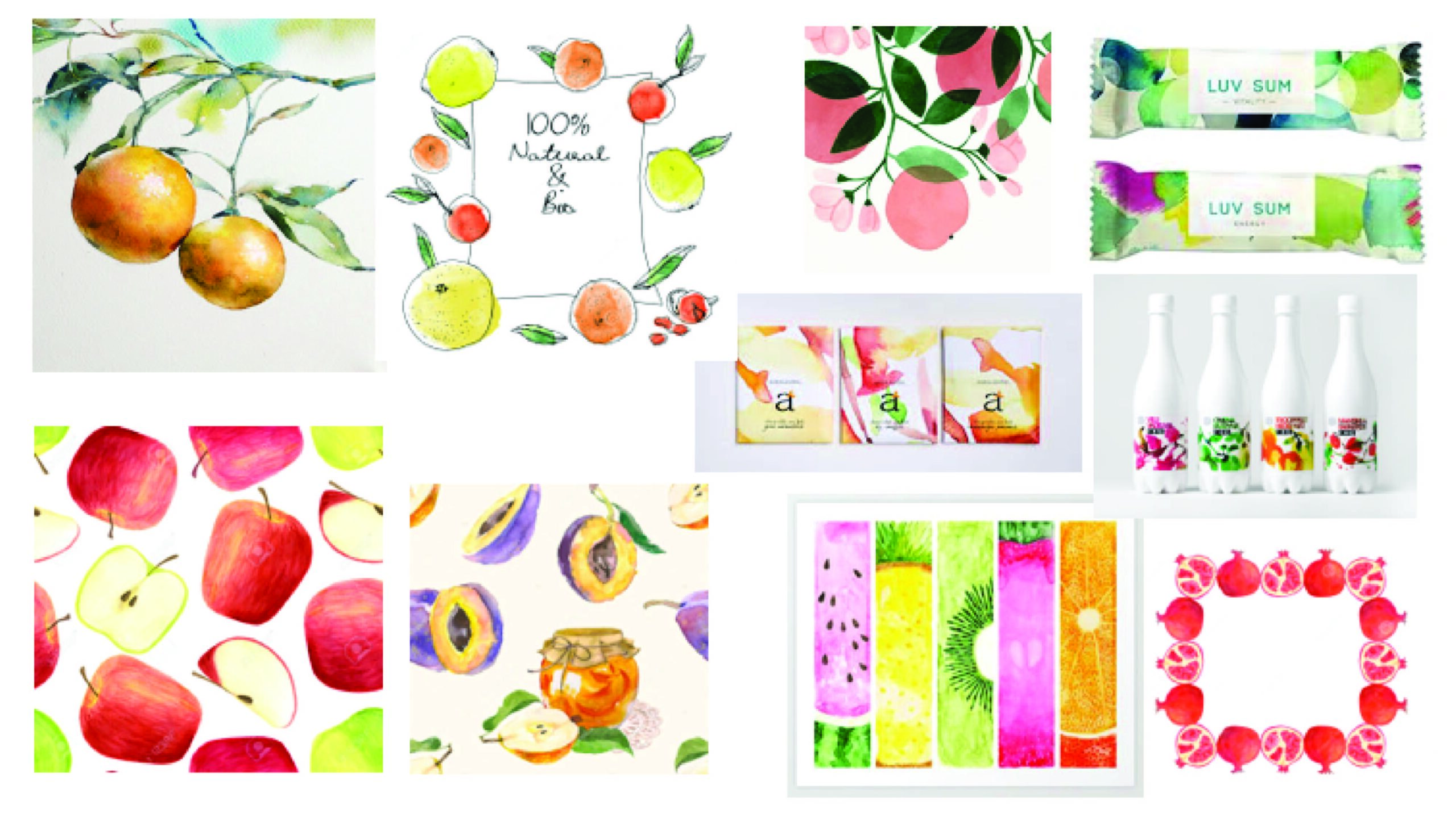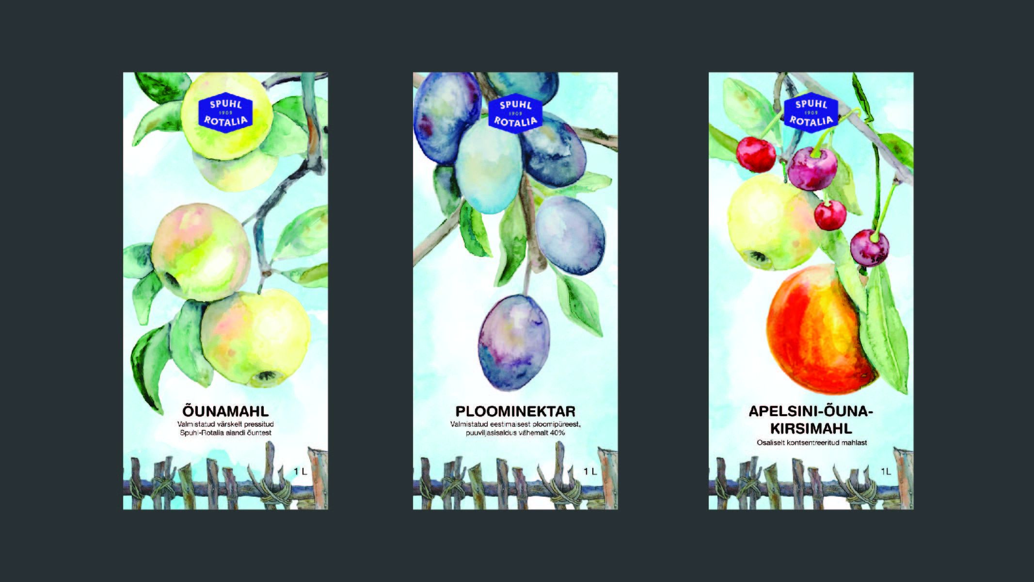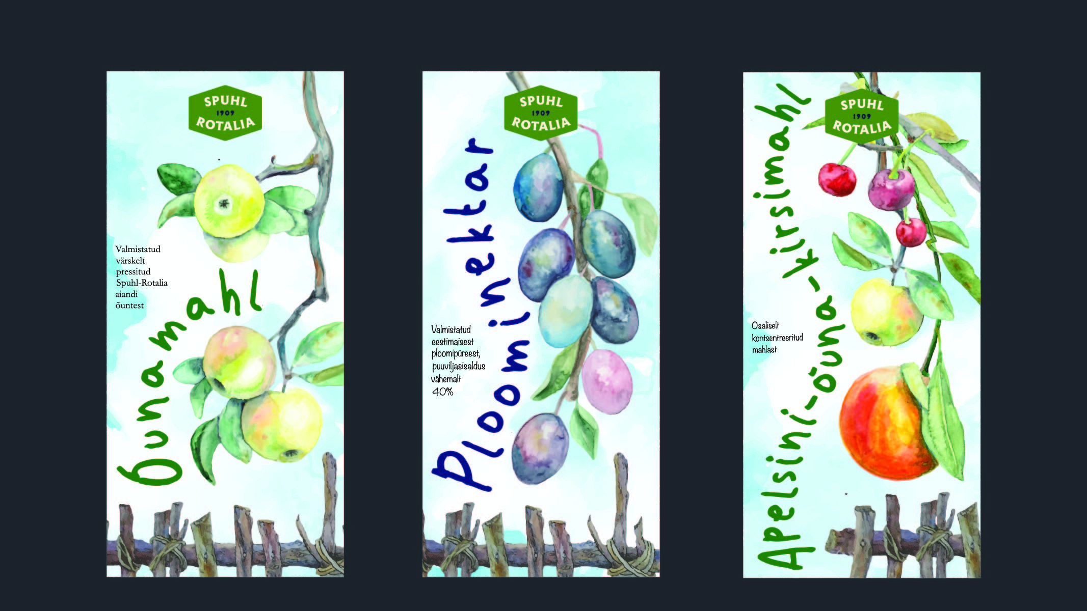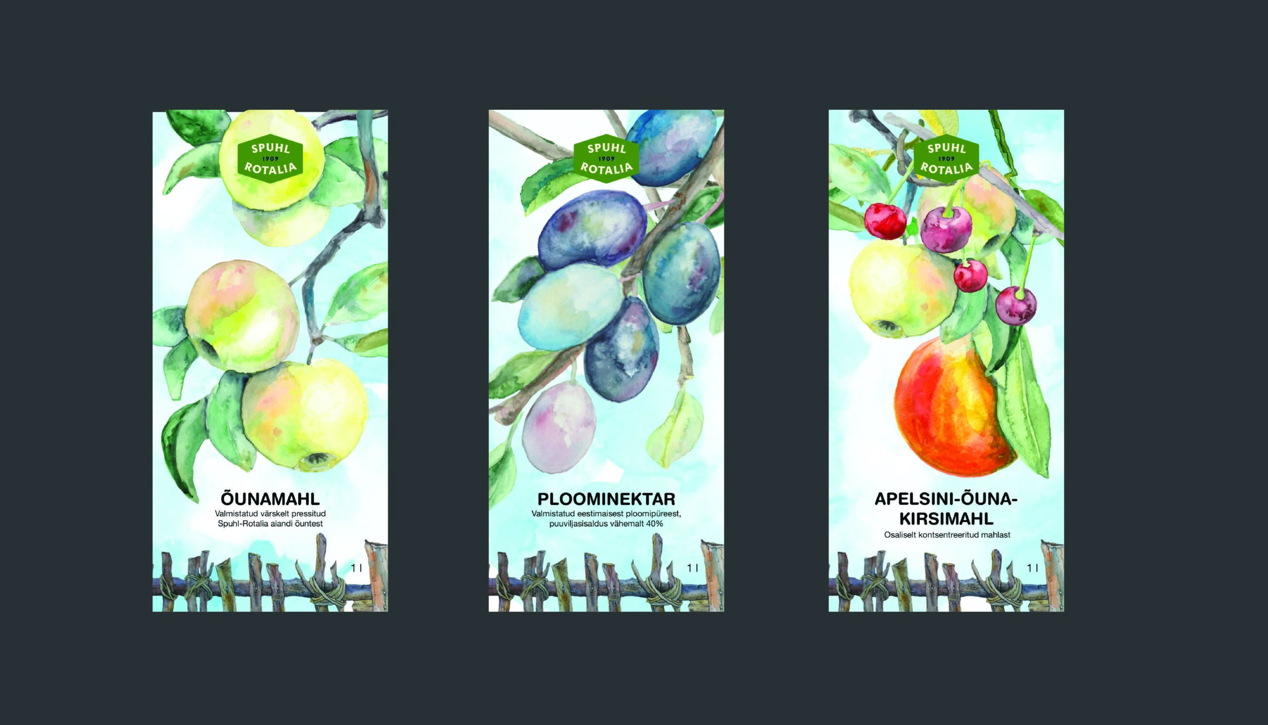 Pakenditel kasutatud puuviljade illustratsioonid tegin ise akvarellidega.