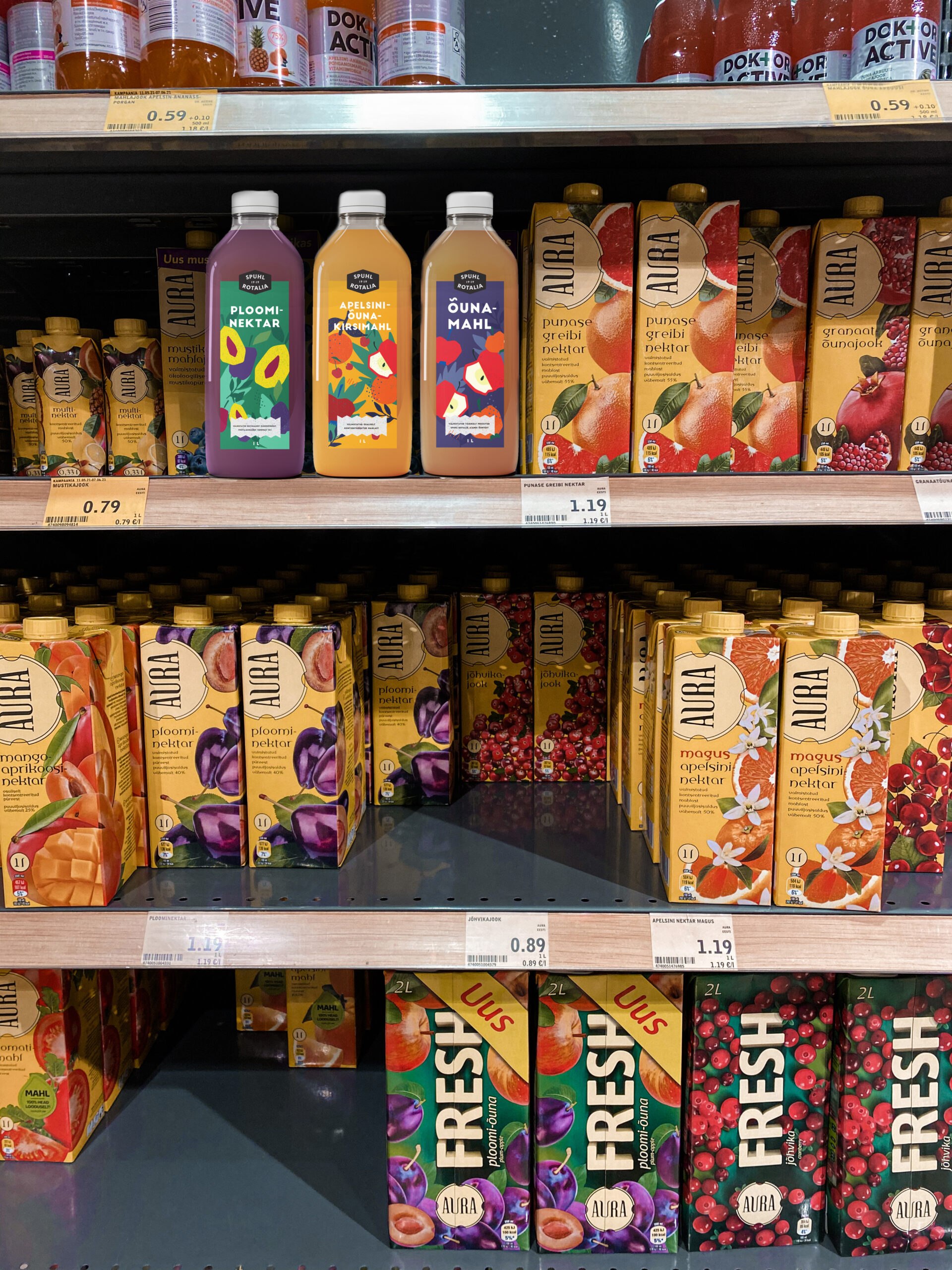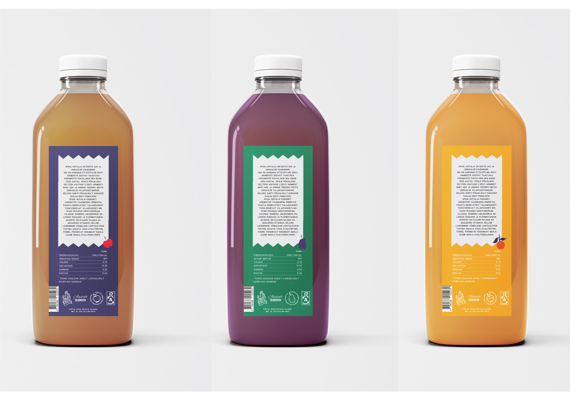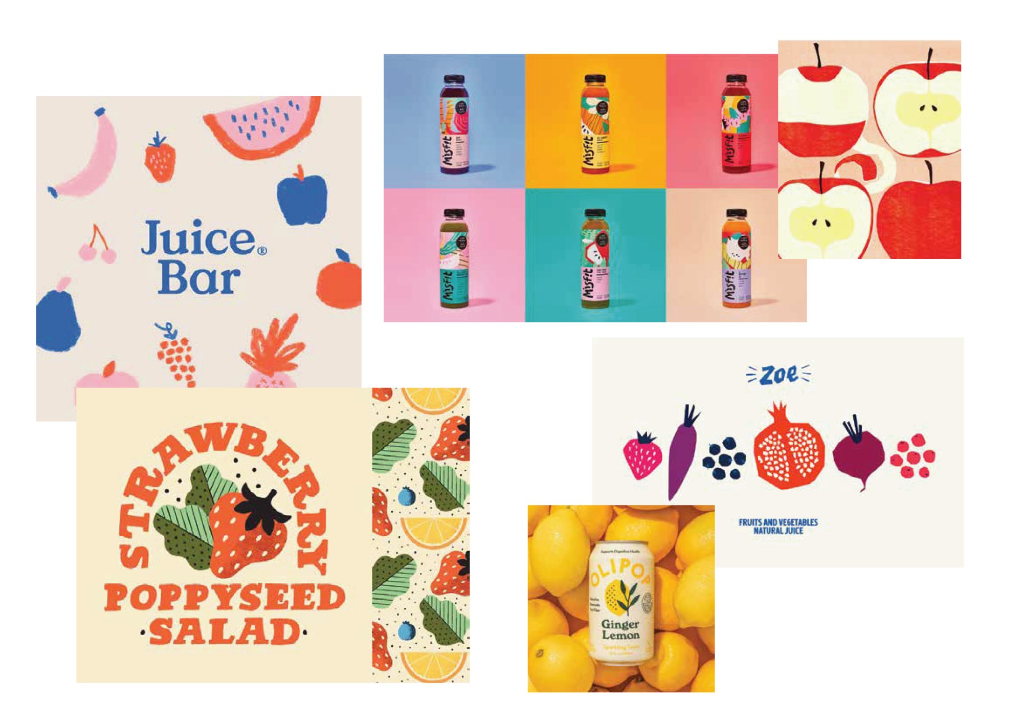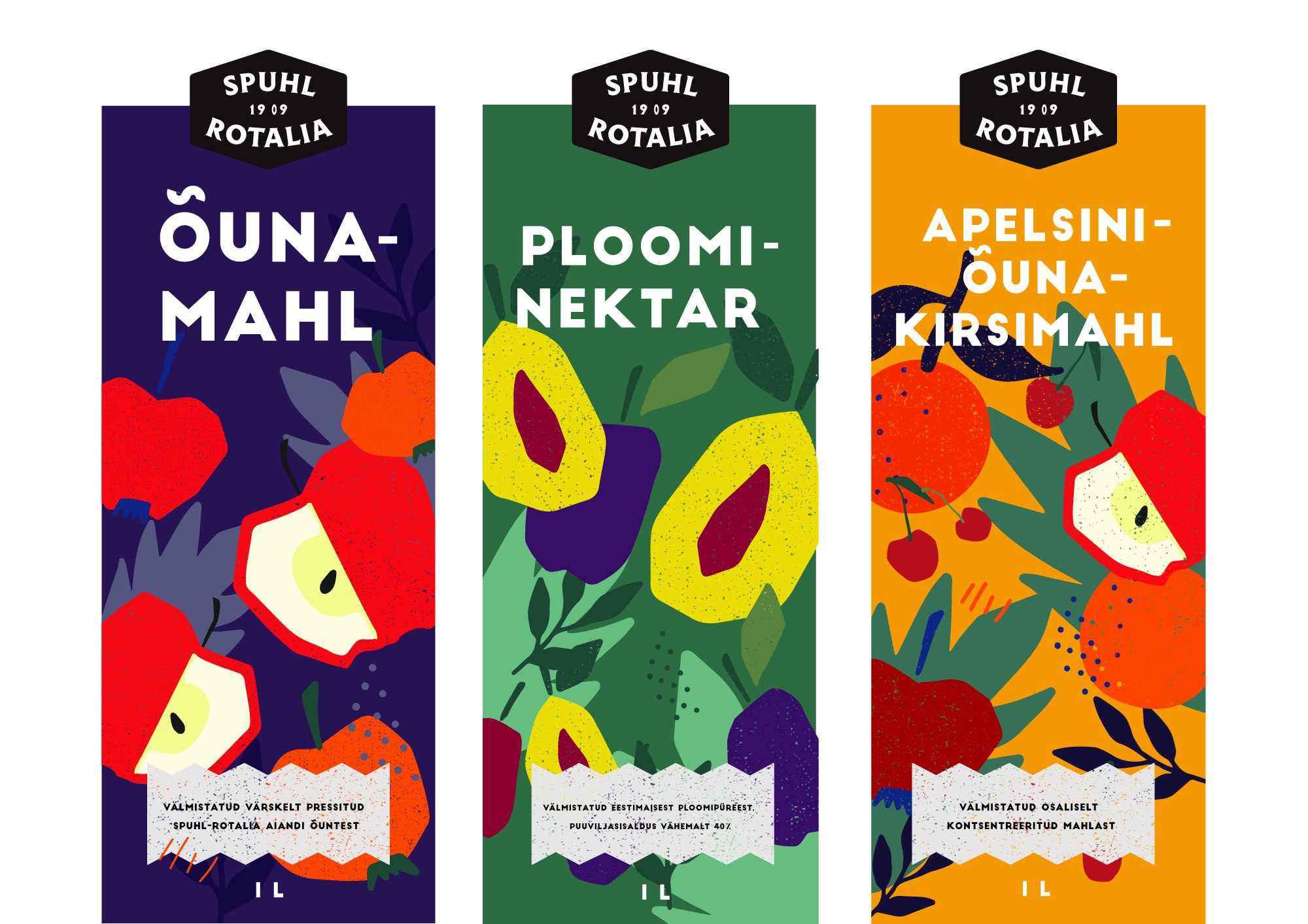Käsitsi Procreate programmis joonistatud viljad ning töödelnud Adobe Ilustraatoris. Värvid ja elemendid valitud, et disain oleks ainulaadne ja viljad oleksid värsketes toonides. Kasutatud illustratsioonid tegin ise Procreates.
