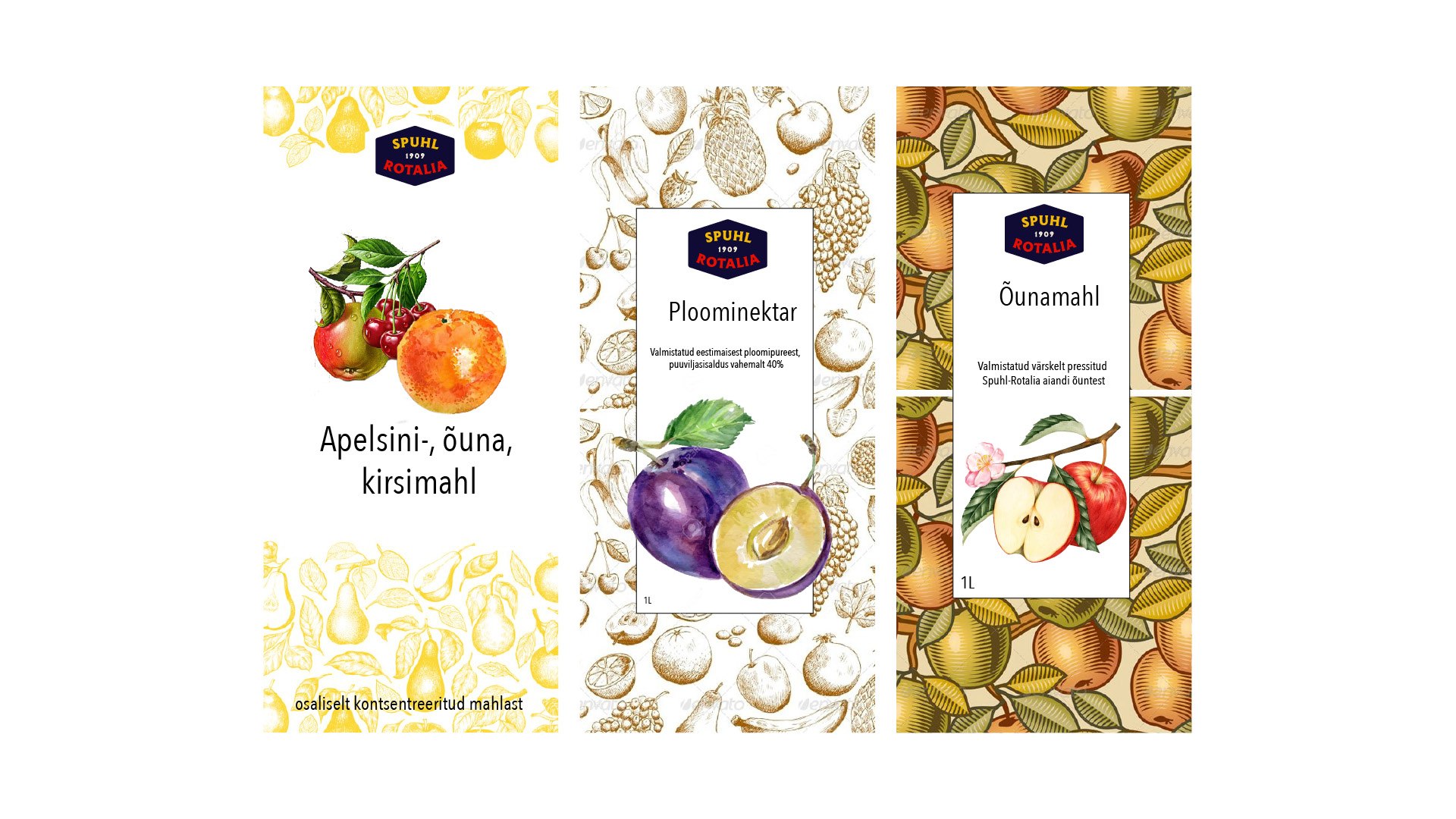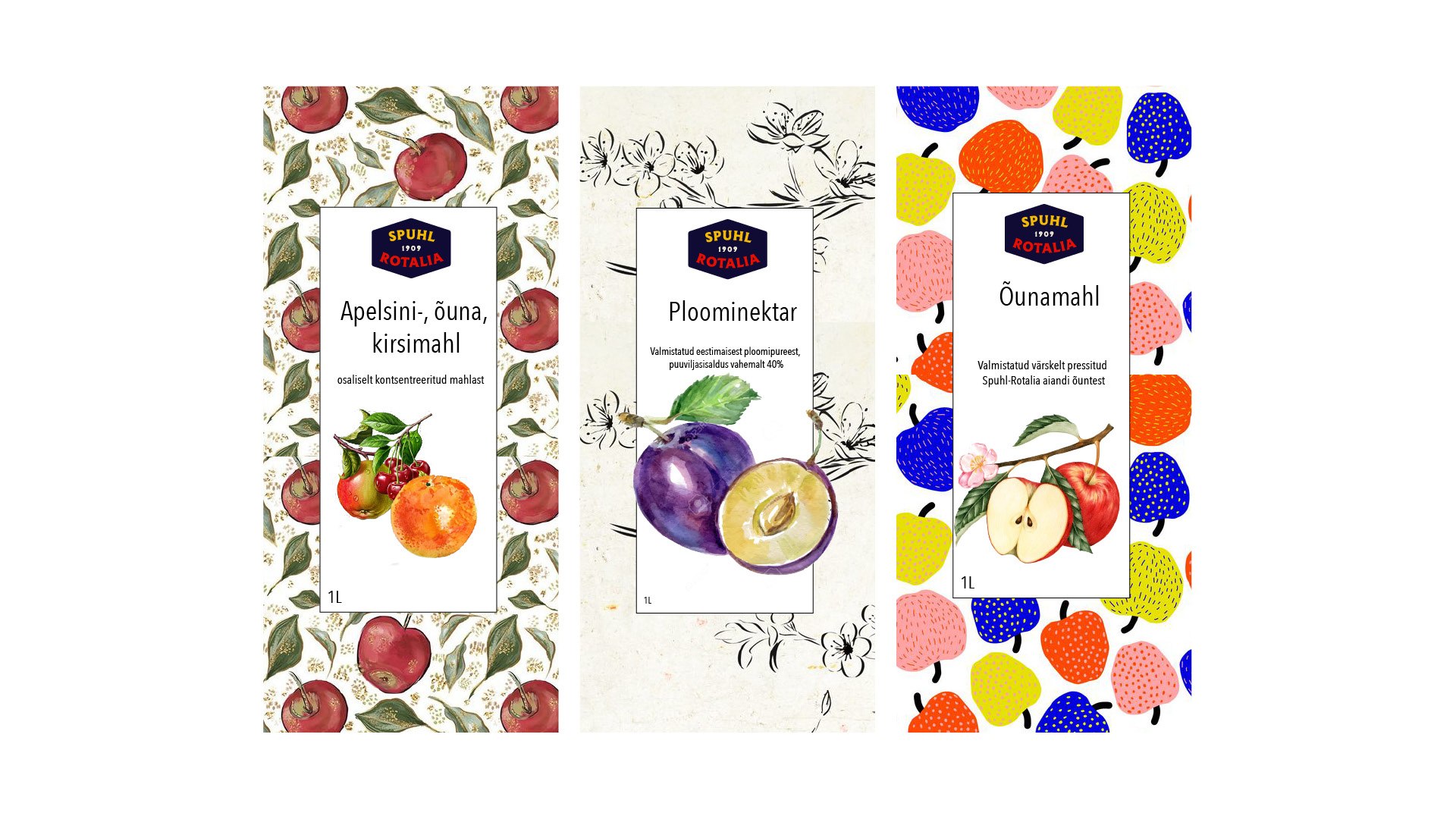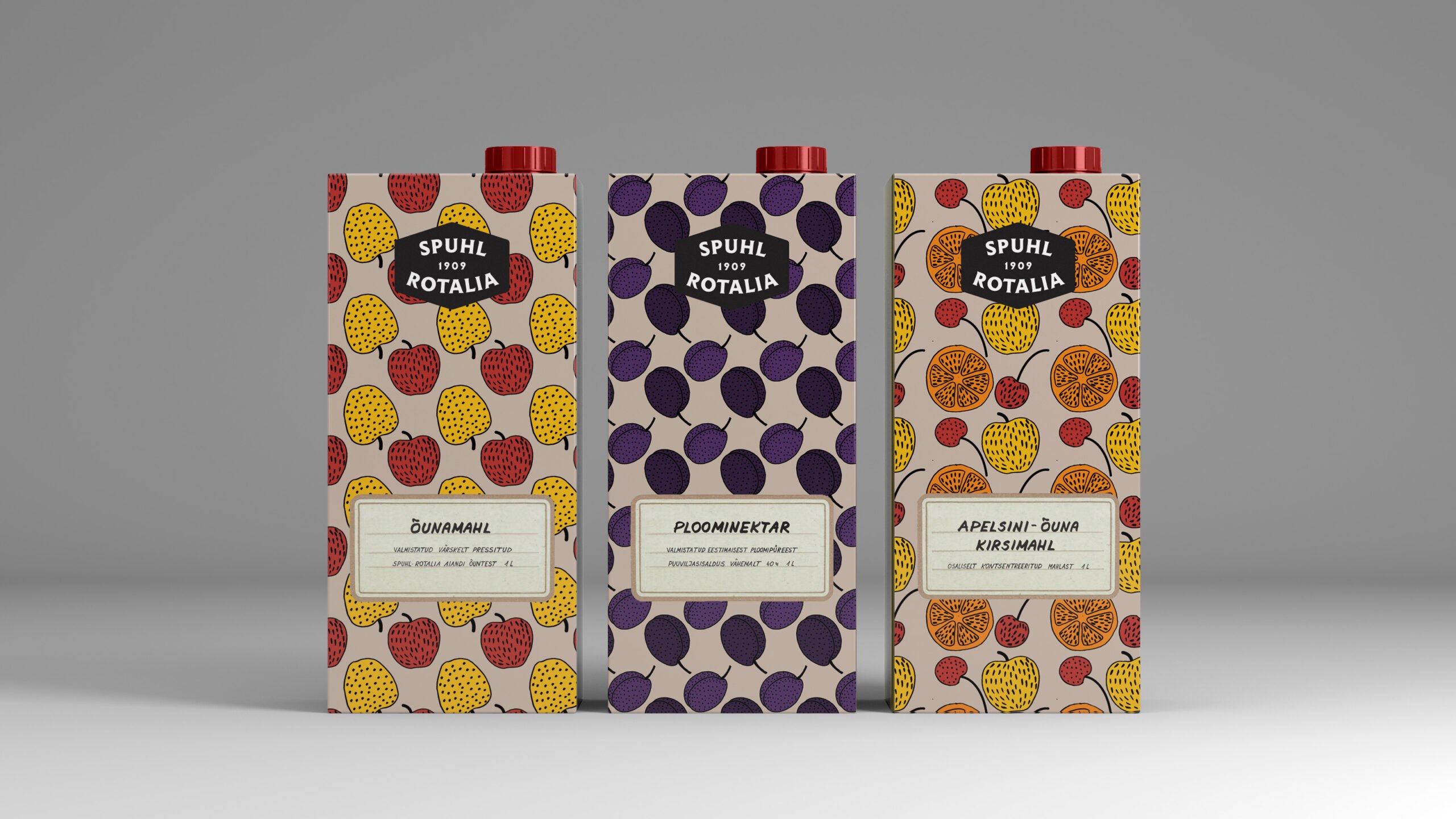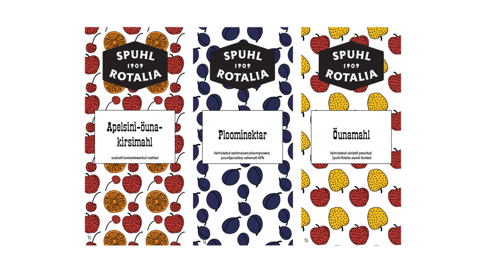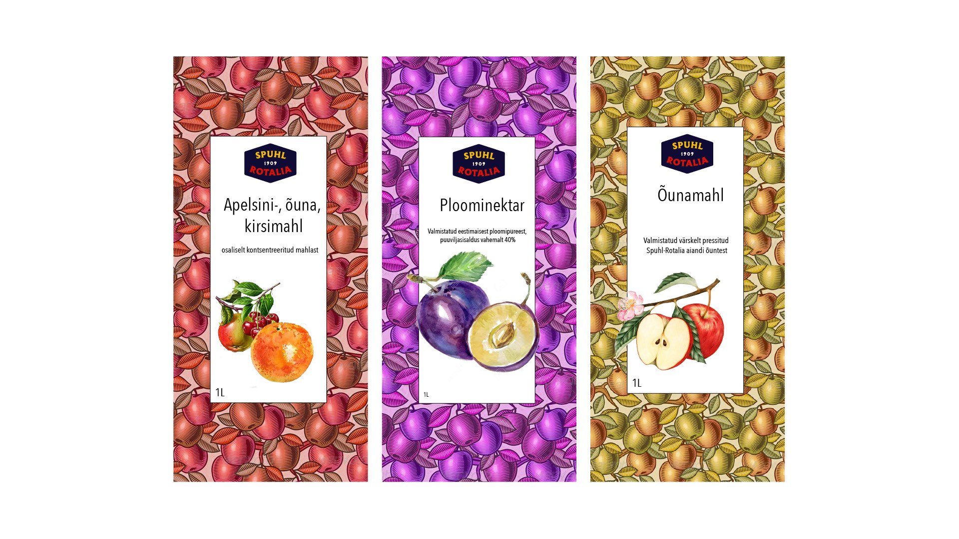 Kujunduse põhielemendina on kasutatud vektoriseeritud Vormsi vaiba mustrit, mis iseloomustab Spuhl-Rotalia õunte päritolu.