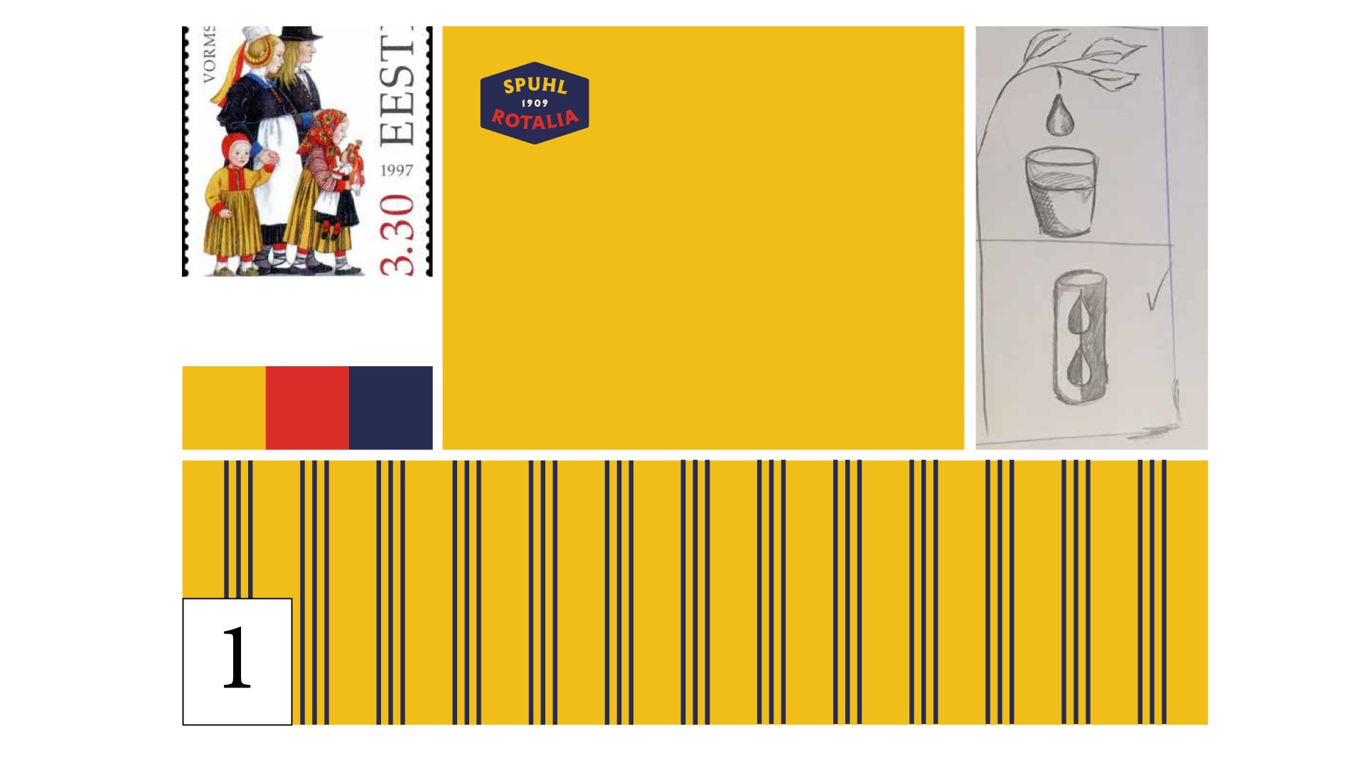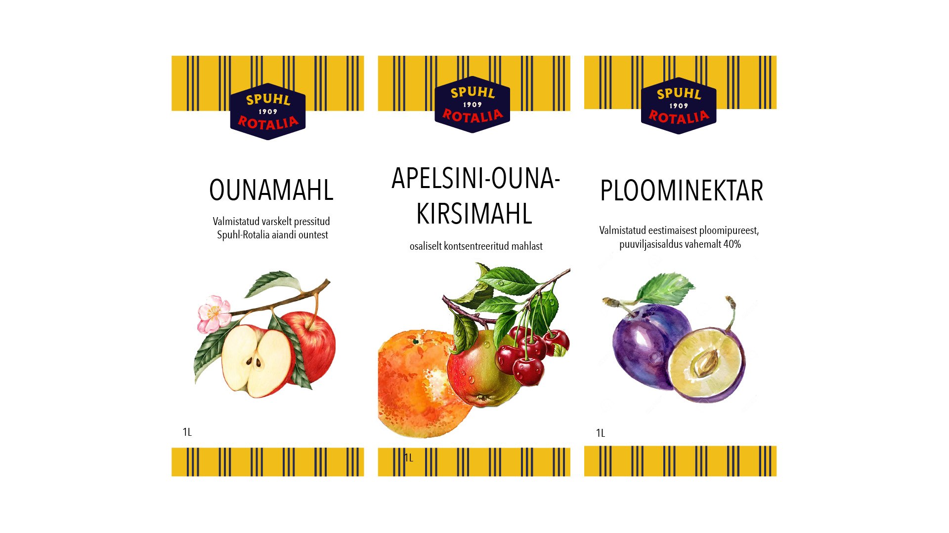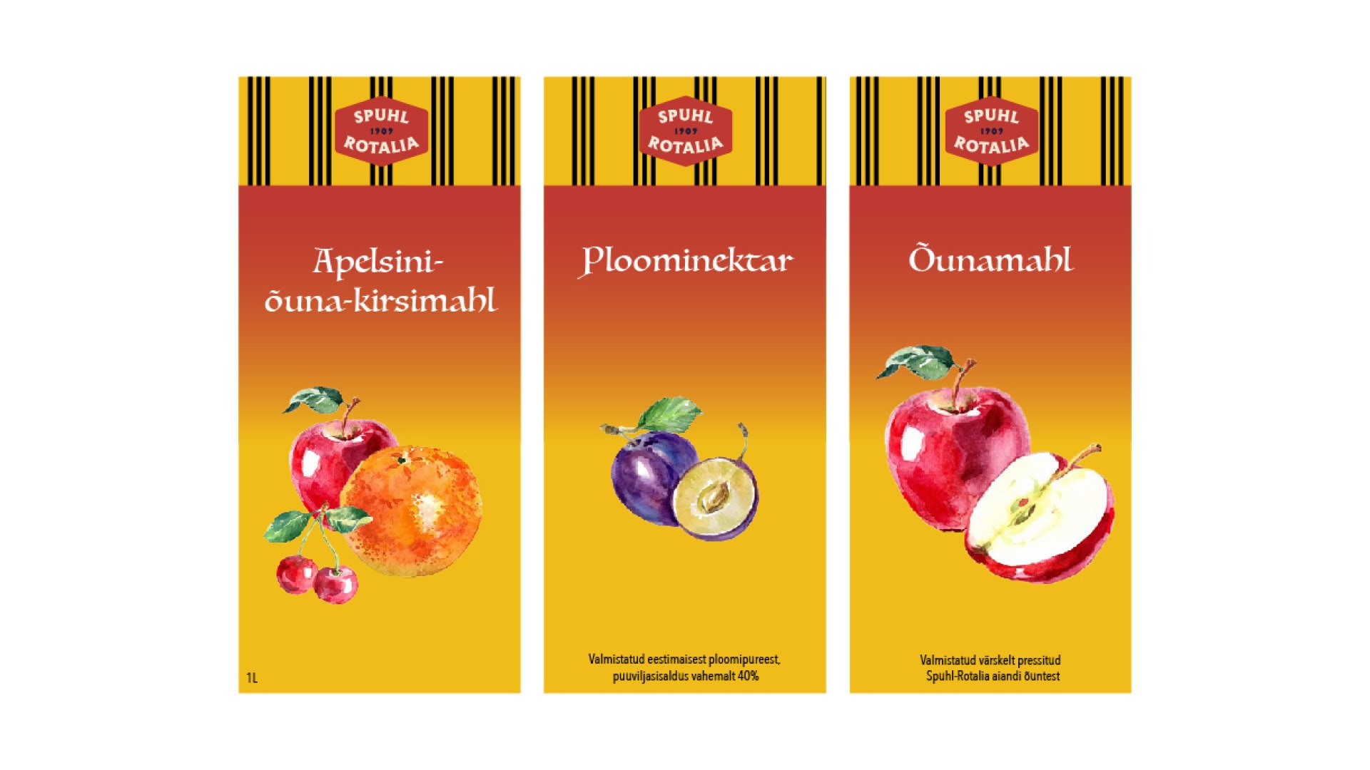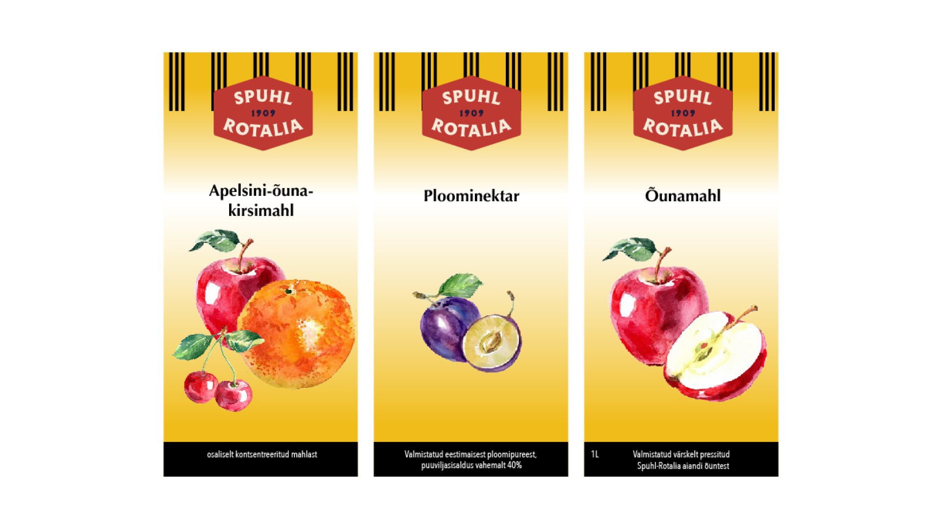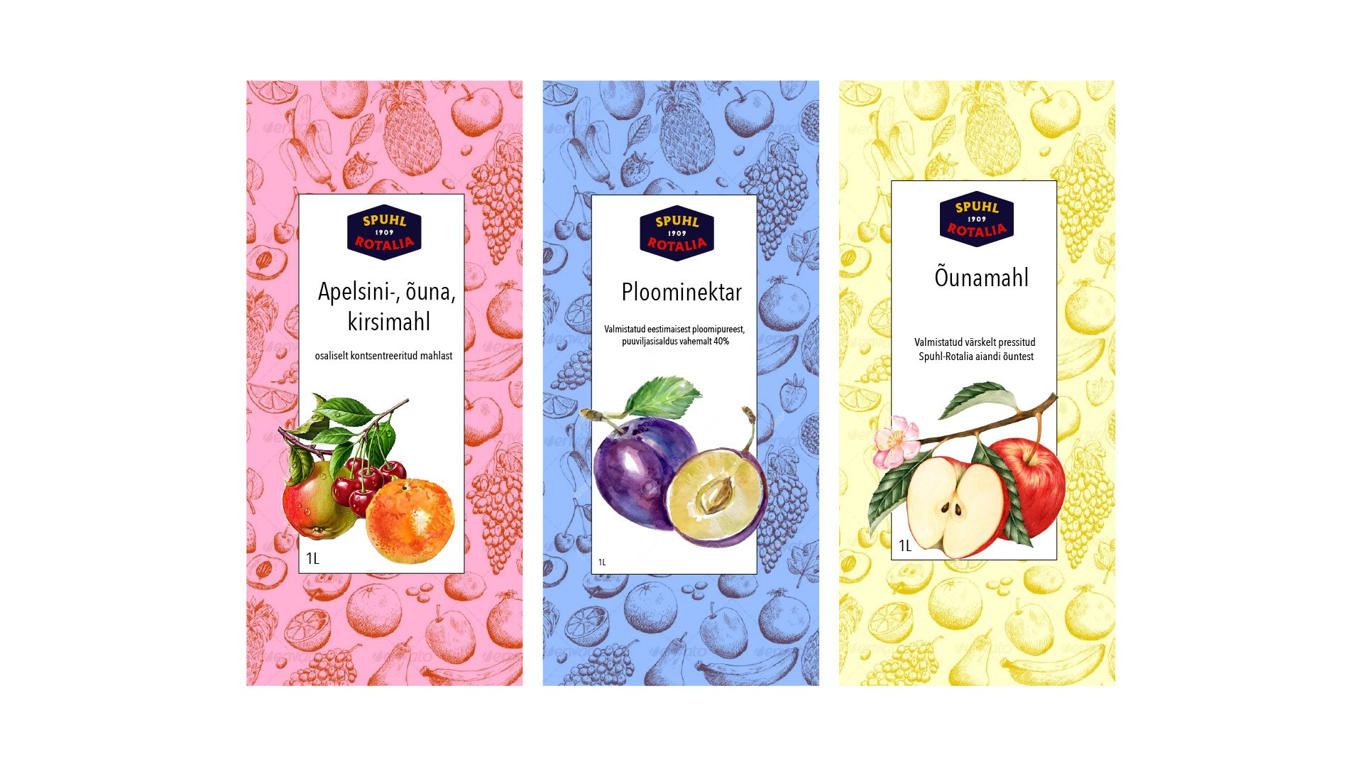 Kujunduse põhielemendina on kasutatud vektoriseeritud Vormsi vaiba mustrit, mis iseloomustab Spuhl-Rotalia õunte päritolu.
